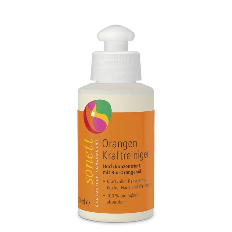 Sonett keskkonnasõbralik Puhastusvahend apelsinikooreõliga (120 ml). Sobilik veekindlatele pindadele. Eemaldab tihked rasva- ja õliplekid nii köögis, vannitoas, wc-s, kui garaažis õrnu pindu kahjustamata. Kontsentraat sobib kõikide pestavate ja veekindlate pindade puhastamiseks. Nahasõbralik.