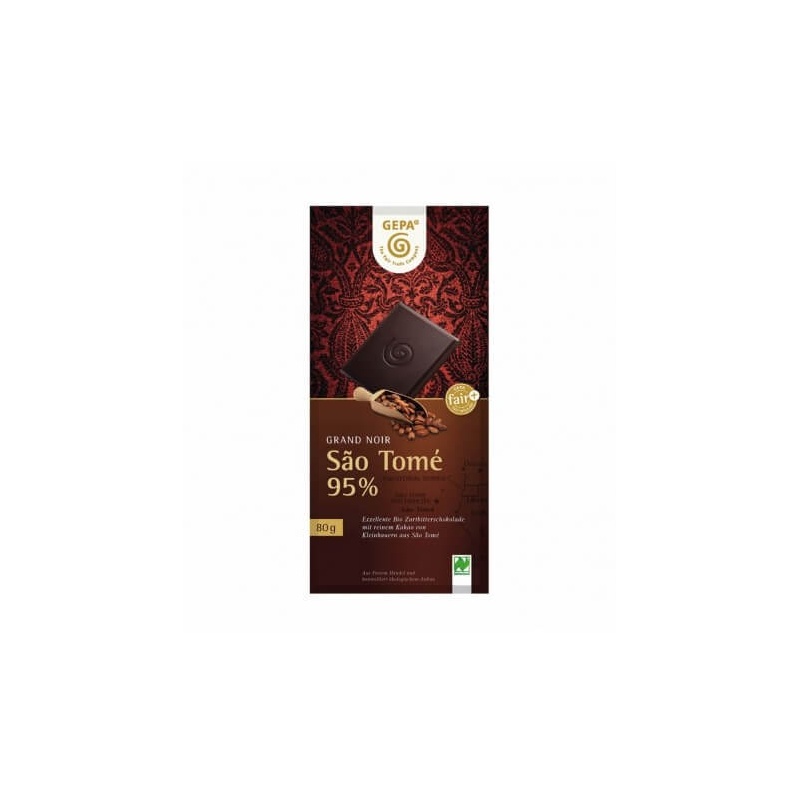 São Tomé saareriik on kuulus suurepärase kakao poolest. Saare nime kannab ka see eriti kõrge (95%) kakaosisaldusega tume šokolaad. Aromaatne gurmeešokolaad harmoneerub suurepäraselt punase veiniga ja tagab intensiivse maitseelamuse iga tükiga. Šokolaad on pakendatud keskkonnasõbralikus NatureFlex kiles, mis koosneb 90–94% taastuvatest toorainetest (tselluloos). See on vastavalt EL standardile EN 13432 biolagunev ja komposteeritav.