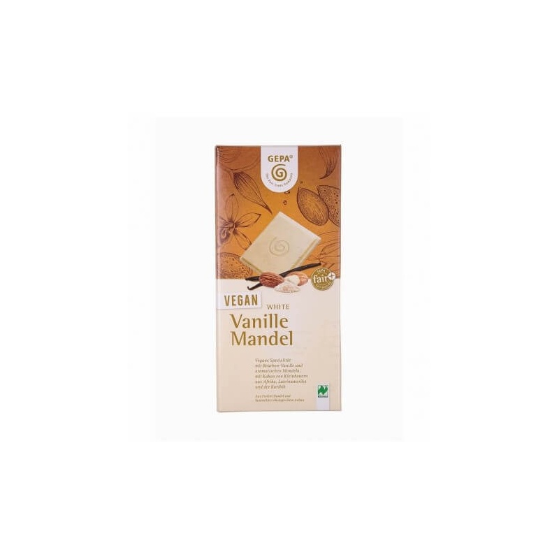 Peeneks jahvatatud mandlite ja tõelise vaniljega võrgutab see vegan valge šokolaad kõiki maitsemeeli. See on pakendatud keskkonnasõbralikus NatureFlex kiles, mis koosneb 90–94% taastuvatest toorainetest (tselluloos). See on vastavalt EL standardile EN 13432 biolagunev ja komposteeritav.