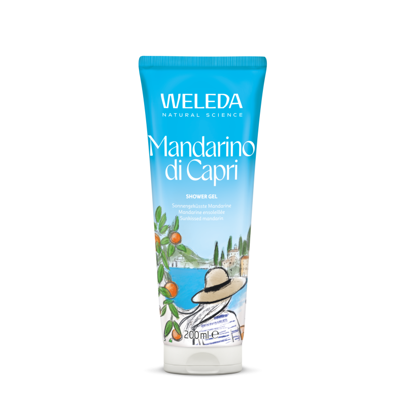 Weleda Duśigeel Mandarino di Capri lõhnab nagu tõeline puhkus päikeselisel Capri saarel Vahemere ääres.